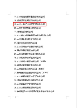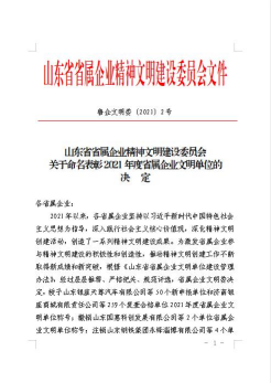 近日,山东省省属企业精神文明建设委员会印发《关于命名表彰2021年度省属企业文明单位的决定》(鲁企文明委〔2021〕2号),授予山东土地产业运营管理有限公司山东省省属企业精神文明单位荣誉称号。