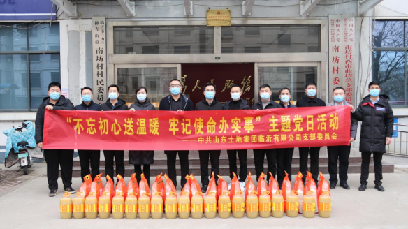 为抓好落实“不忘初心、牢记使命”主题教育,深入贯彻主题教育的思想理念,提高党员干部的职责使命感,结合中共中央组织部近期下发的通知,要求各级党组织在元旦春节期间开展走访慰问生活困难党员、老党员、老干部活动,使广大党员、干部和人民群众深切感受到以习近平同志为核心的党中央的关怀和温暖,进一步激励广大党员、干部弘扬伟大建党精神,不忘初心、牢记使命,埋头苦干、勇毅前行。1月25日上午,山东土地集团临沂有限公司党支部组织广大党员职工赴临沂市兰山区柳青街道金升社区开展了“不忘初心送温暖 牢记使命办实事”主题党日暨社区“双报到”活动。