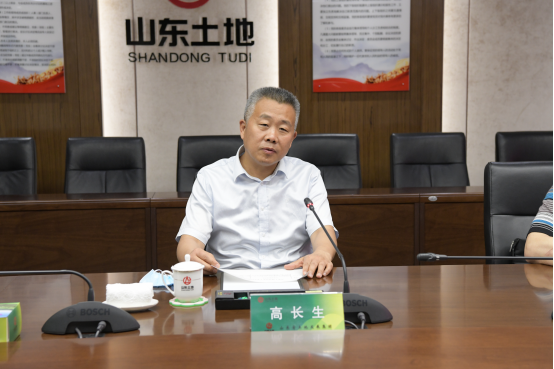 孙德亭对高长生一行的到来表示欢迎和感谢。他说,高长生主任一行在“攻坚二季度、决胜上半年”的关键节点来调研是对集团公司的莫大鼓励与支持。今年以来,山东土地集团按照“稳字当头、稳中求进、稳中求快、稳中求好”的工作总基调,截止4月份,完成营业收入48.76亿元,同比增长271%,实现了开门红、稳增长。为实现“攻坚二季度、决胜上半年”任务,集团公司上半年营业收入目标从65亿元提高至80亿元,将任务落实到具体项目,逐一分解细化,明确责任,时时调度,确保圆满完成任务目标,彰显山东土地国企担当。